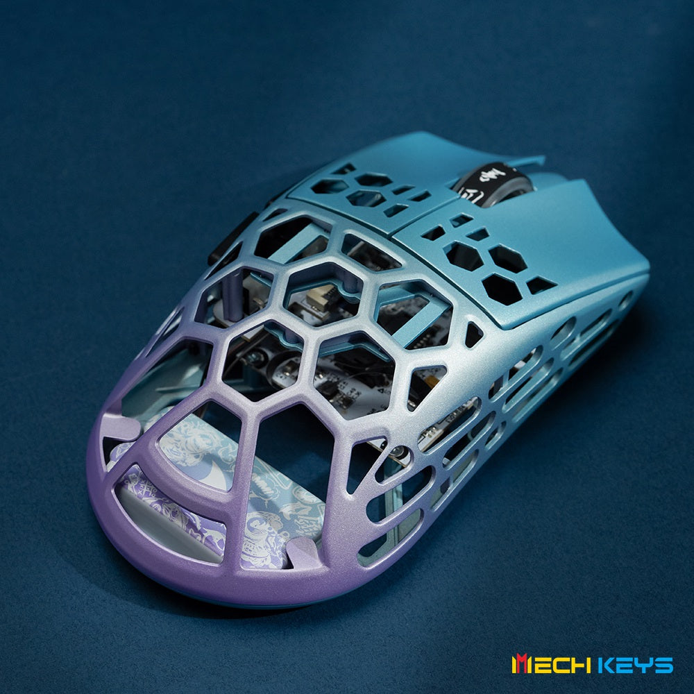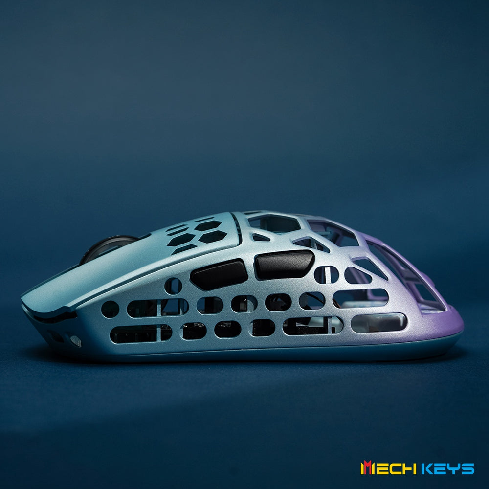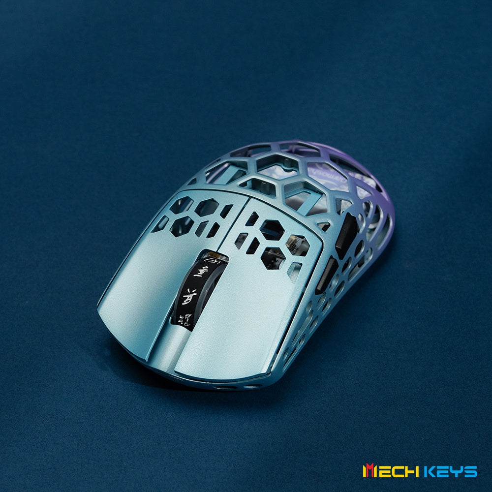 Darmoshark M2 Dareo 4K mouse has a solid Mg-Al(Magnesium Aluminum) alloy build. The mouse chassis is designed with great precision to provide a comfortable ergonomic shape. Mg-Al alloy provides a solid structure with lightweight ergonomics, the M2-Air weighs just 36 grams in the Starry Sky color and 38 grams in the Red color. Even the normal variant weighs just 39 grams.