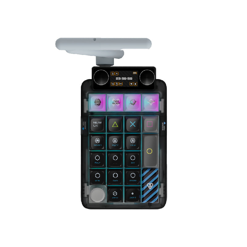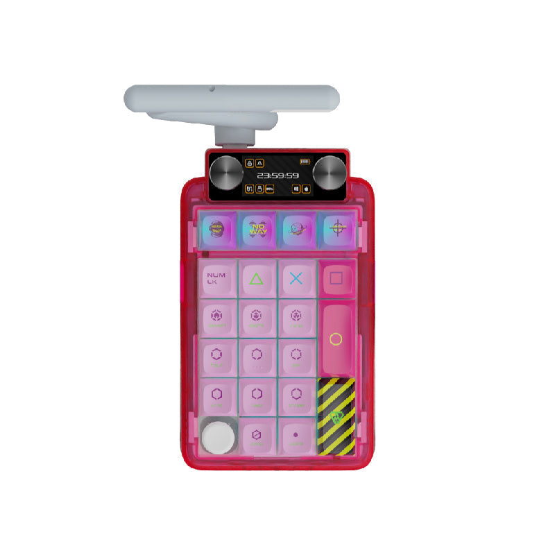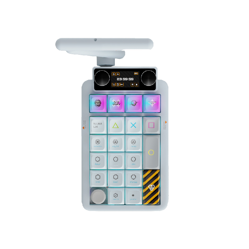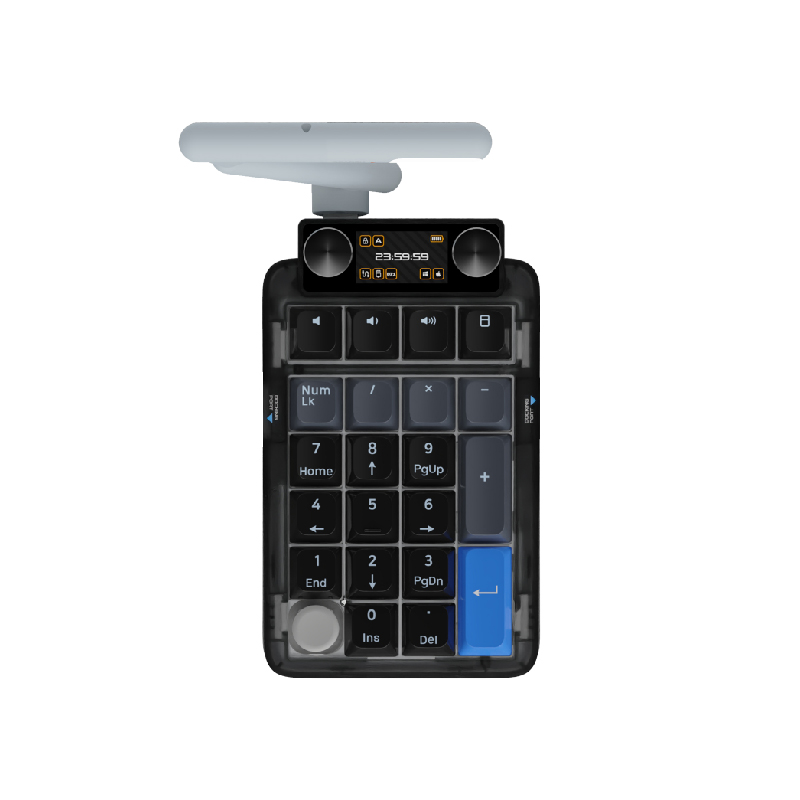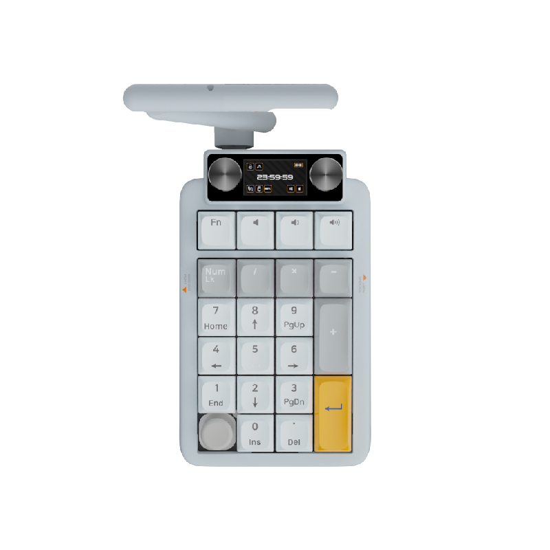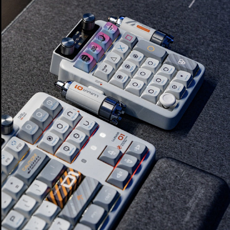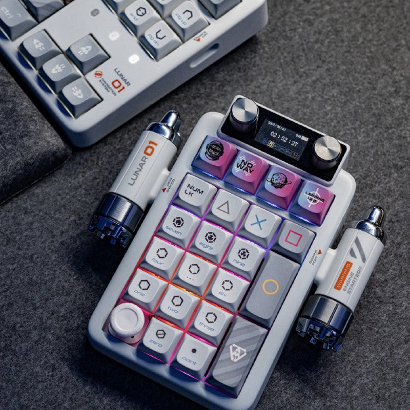 KeysMe Lunar02 is a compact 21-key numeric keypad with a design based on the lunar space theme design. The Numpad features a 21-key arrangement with a programmable knob, a built-in colourful display screen, a replaceable gasket design, hot-swappable sockets, and many more features. With the help of a versatile three-mode connectivity function, the Lunar02 keypad can be connected to a range of devices with seamless switching between them. KeysMe Lunar02 comes with a lamp light that can be used to illuminate the keyboard in dark environments!!