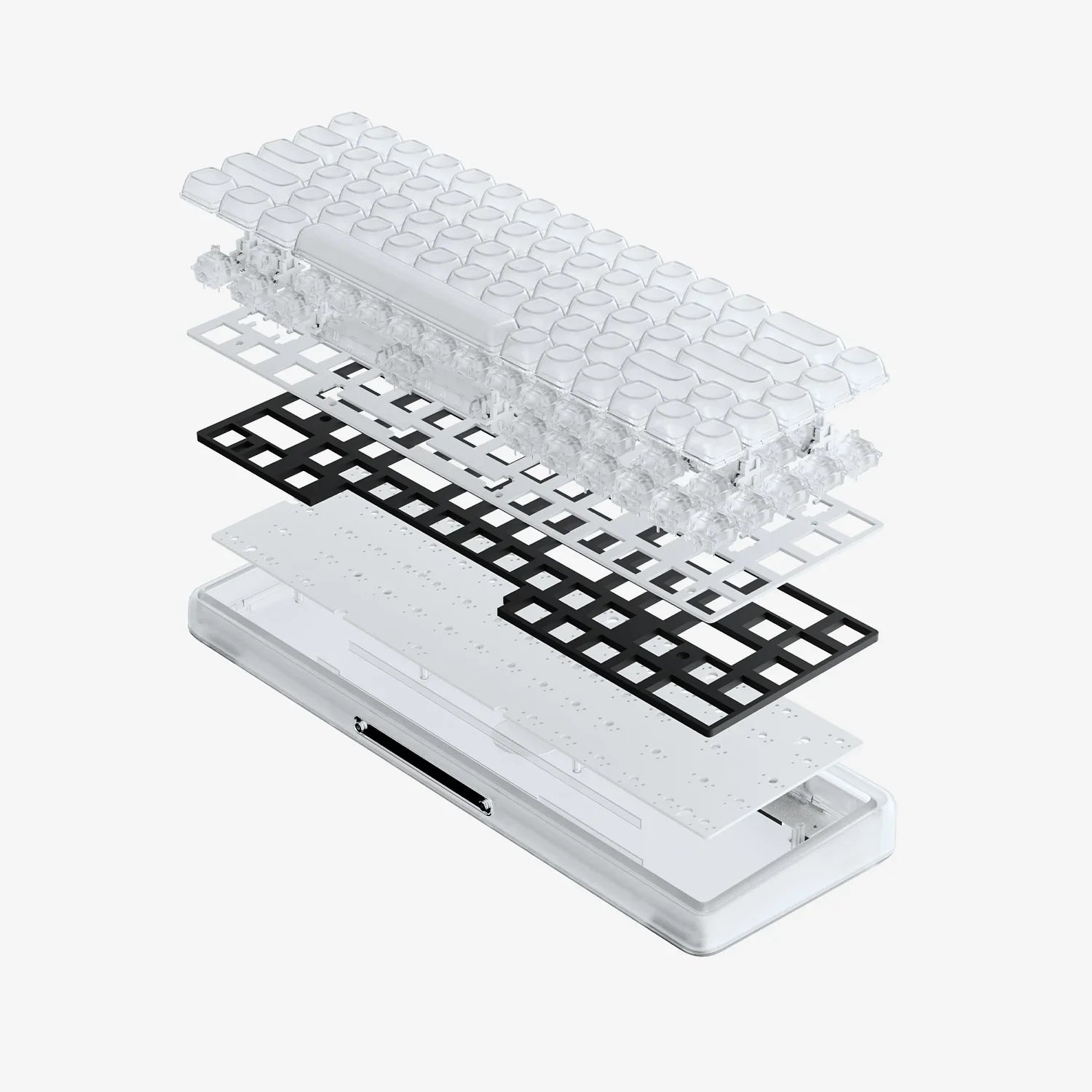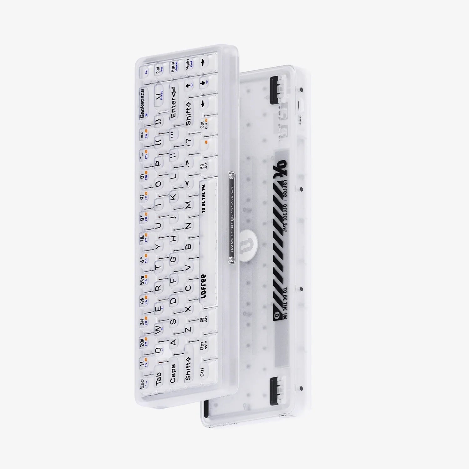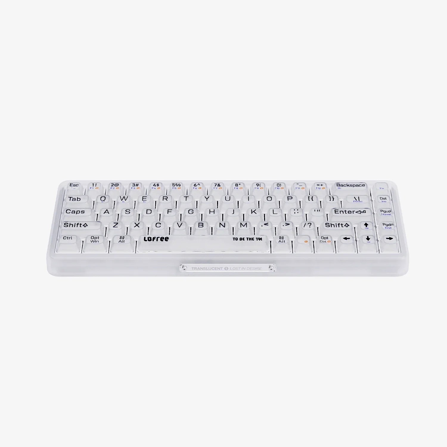 The 'Misty' version of the 1% series boasts a frosted housing, providing a visually appealing look for Office 2㎡. Not as transparent as the original 1%, 'Misty' has a fully frosted white keycaps and chassis, along with upgraded Hot Swap and Poron Silencing Pad functionality for an even better experience. The rich white LED backlit contributes to the attractiveness of the frosted design, completing the desired look of the LOFREE 1% 'Misty' Keyboard.