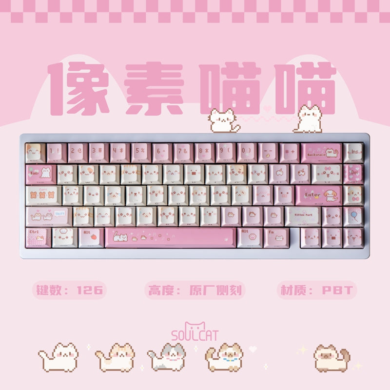 Soulcat Pixel Meow Cherry Profile PBT Side-printed Keycaps Set