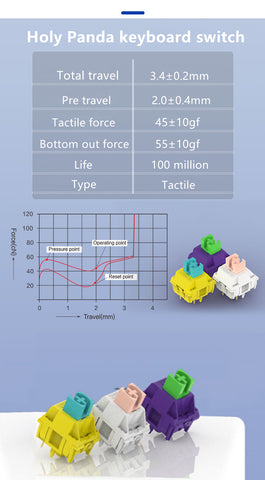 Holy Panda 키보드 스위치는 Holy Panda와 TTC가 공동으로 맞춤화한 촉각 키보드 스위치입니다. 작동력은 63.5GF이며 금도금 스프링 구조를 채택했습니다. 촉감이 강하고 확인감이 강하며 부드럽고 둔탁하지 않은 촉각 키보드 스위치입니다. 이 키보드 스위치는 또한 맞춤형 TTC 방진 벽 구조 키보드 스위치 코어, 안정적인 하단 터치, 하단 사운드를 채택합니다. 공장 윤활, 부드러운 느낌, 사용 준비. 클래식 팬더 키보드 스위치입니다.