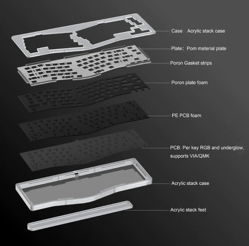 7. Poron pad, poron sandwich cotton, PE switch pad (bring with the sound pack)
