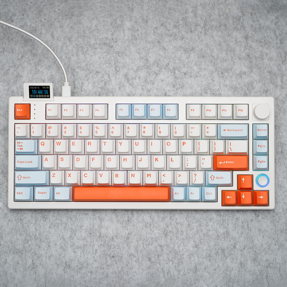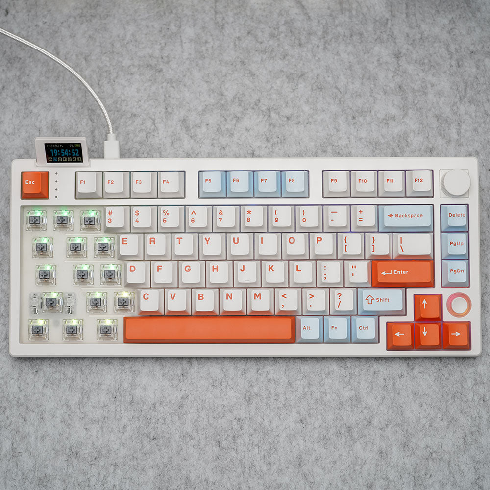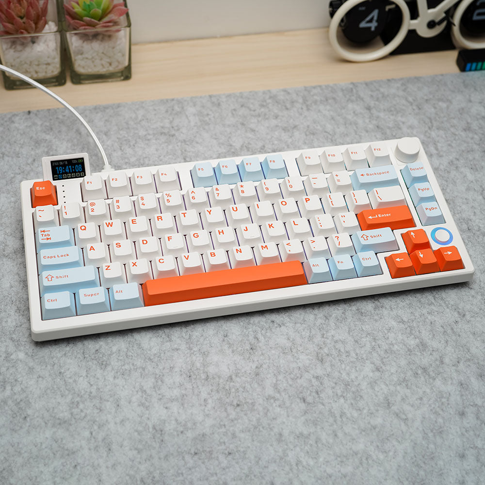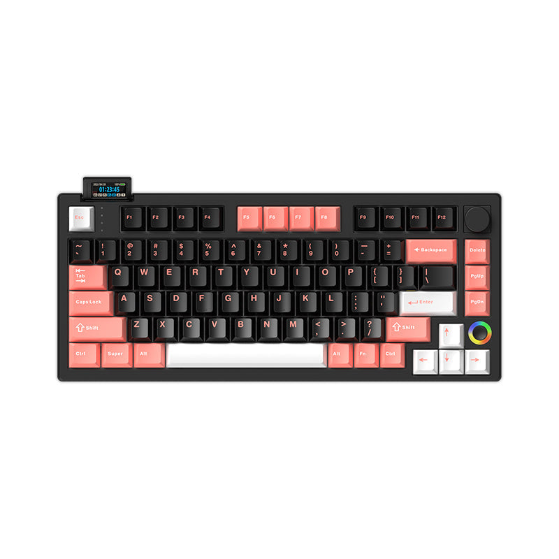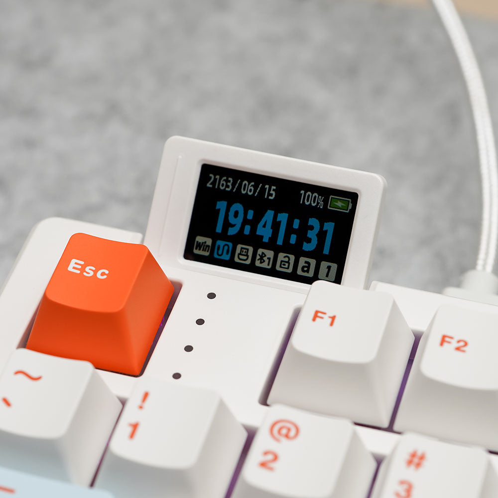 Introducing the all-new Hello Ganss XS 75t a compact 75% keyboard designed with advanced functions and features. The XS 75t features a customizable flippable LCD display screen along with a five-way joystick. The keyboard also has a volume knob that can easily be replaced with a hot-swappable design. The entire keyboard is programmable using the driver software. Enjoy musical rhythmic backlighting effects with dynamic RGB Backlight!!