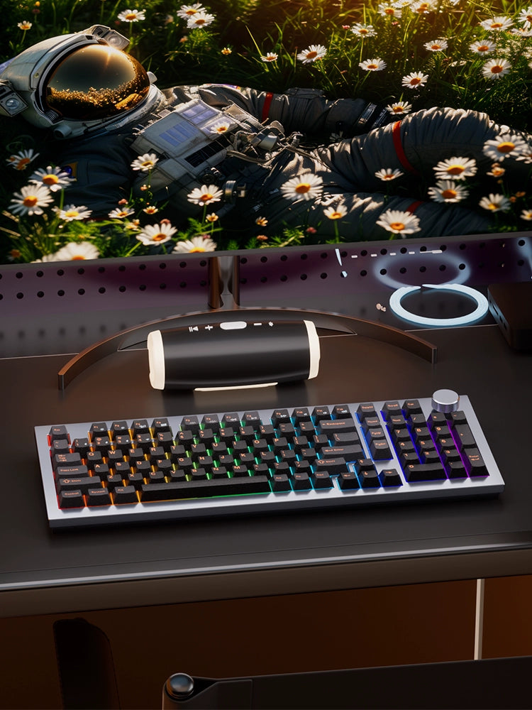 Optimized for productivity and gaming, the compact 98-key layout keeps all essential keys within reach. The tactile metal knob lets you control volume and lighting on the fly.