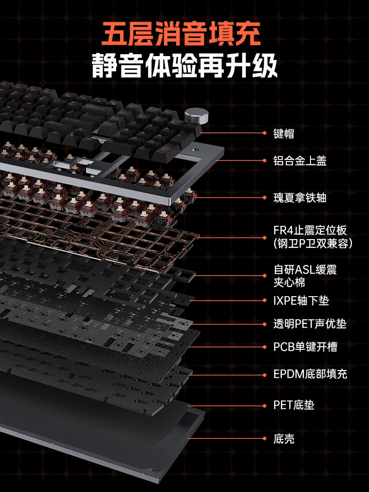 Enjoy a soft, responsive typing experience thanks to the Gasket Pro structure and multiple layers of internal dampening materials. Featuring IXPE under-shaft padding and PORON sandwich foam, this keyboard reduces vibration and offers a pleasantly muted sound profile.