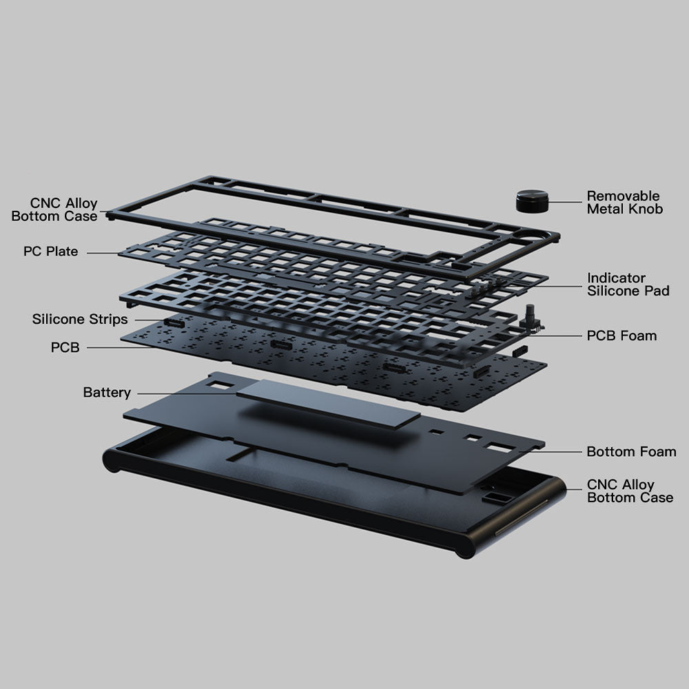 MXRSKEY CK820 keyboard kit comes with a gasket-mounted structure design. The keyboard plate is mounted onto the top and bottom covers using screw-less gasket mounts. It gives the kit a cushiony structure and softens every single keypress!!