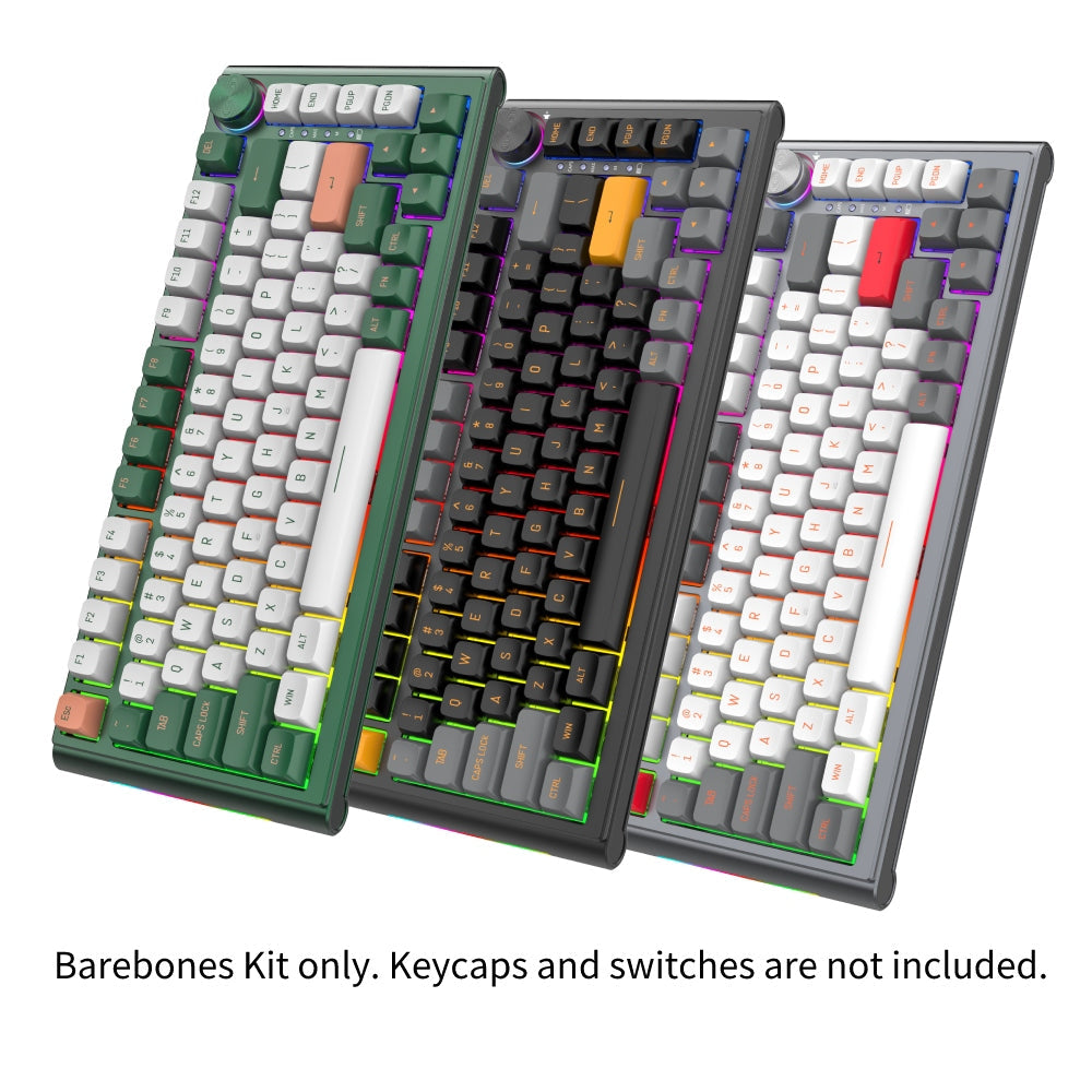 MXRSKEY CK820 is a premium quality three-mode compact 75% mechanical keyboard kit. Create the keyboard as you like with this premium keyboard kit featuring a gasket-mounted structure, south-facing RGB LEDs, Three-mode connectivity, all-aluminum aviation-grade chassis, and many more features. The CK820 kit has a fully programmable 75% compact layout with a multimedia knob. Even the knob has a ring-styled RGB indicator light that glows in different colors and can be programmed along with the keyboard’s backlighting!!!