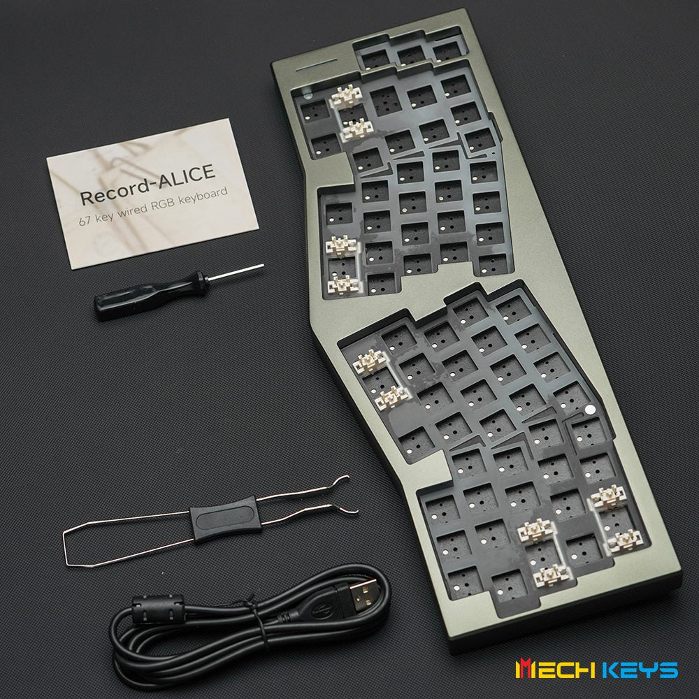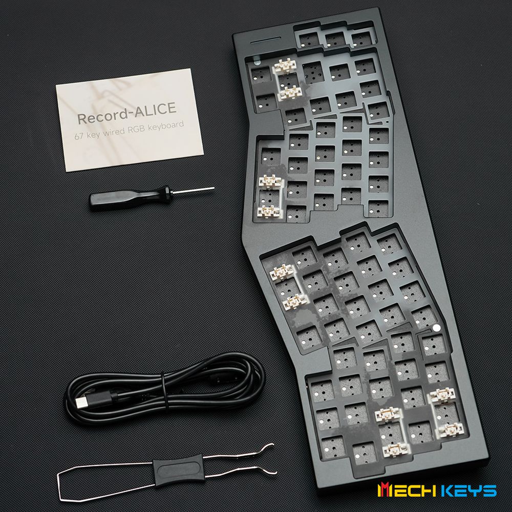 We have many different keyboard kits in the market but only a few have the Split Alice Layout. This WEIKAV Record Alice kit has a split Alice arrangement with a 67-key 68% layout. Split Alice layout is a scientifically designed customized layout which is super comfortable and handy.
