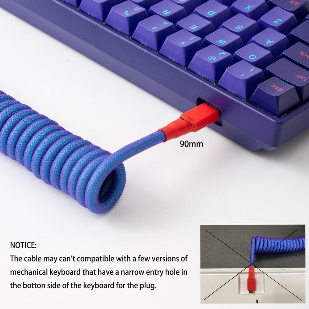 Designed to work flawlessly with any USB type C device, the neon custom cable features a detachable aviator port to support a wide range of connections. However, the cable may can't compatible with a few versions of mechanical keyboards that have a narrow entry hole in the bottom side of the keyboard for the plug.