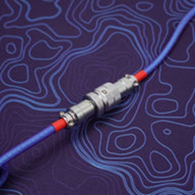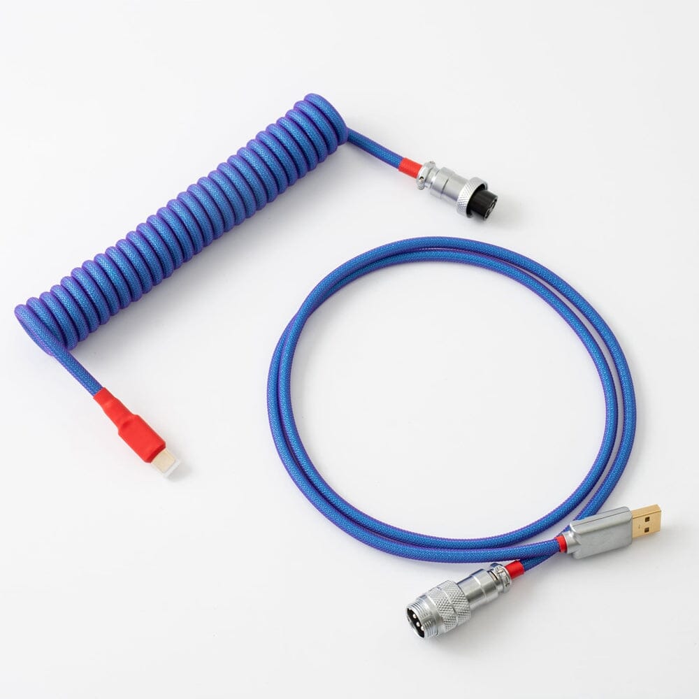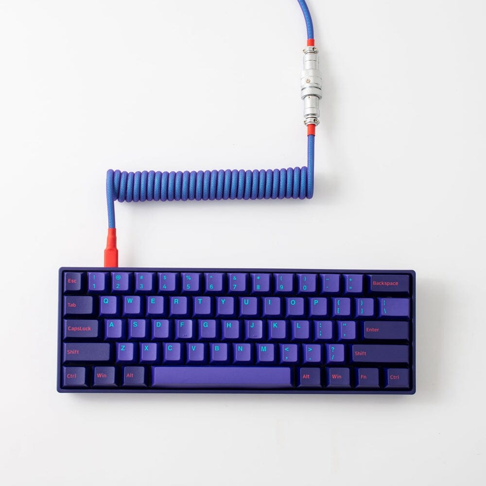 Every keyboard needs a cable. The Neon custom USB cable features a striking blend of Neon blues, purples, and reds on a mesmerizing jacket that nearly glows. This custom cable is double-shielded, coiled cable, 5- pin chrome plating aviator, and USB 2.0-compliant, it's got all the features you need, and the look that everyone wants offers more fun elements for your desk setup.